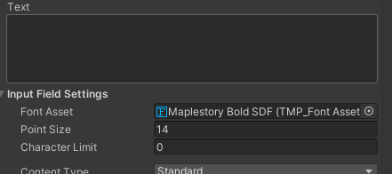 - TextMeshPro는 Maplestory Bold SDF 폰트 에셋을 사용해 글자를 표시하려고 합니다.