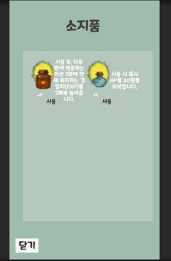 - [소지품] 버튼을 눌러서 InventoryPanel을 켤 때.