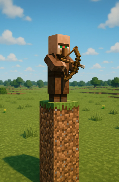 겉보기엔 흙 두 칸 위에 주민이 서 있는 것처럼 보이지만, 사실 블록도, 일반 주민도 아님. 모든 기능이 이 하나의 엔티티 안에 담겨 있음.