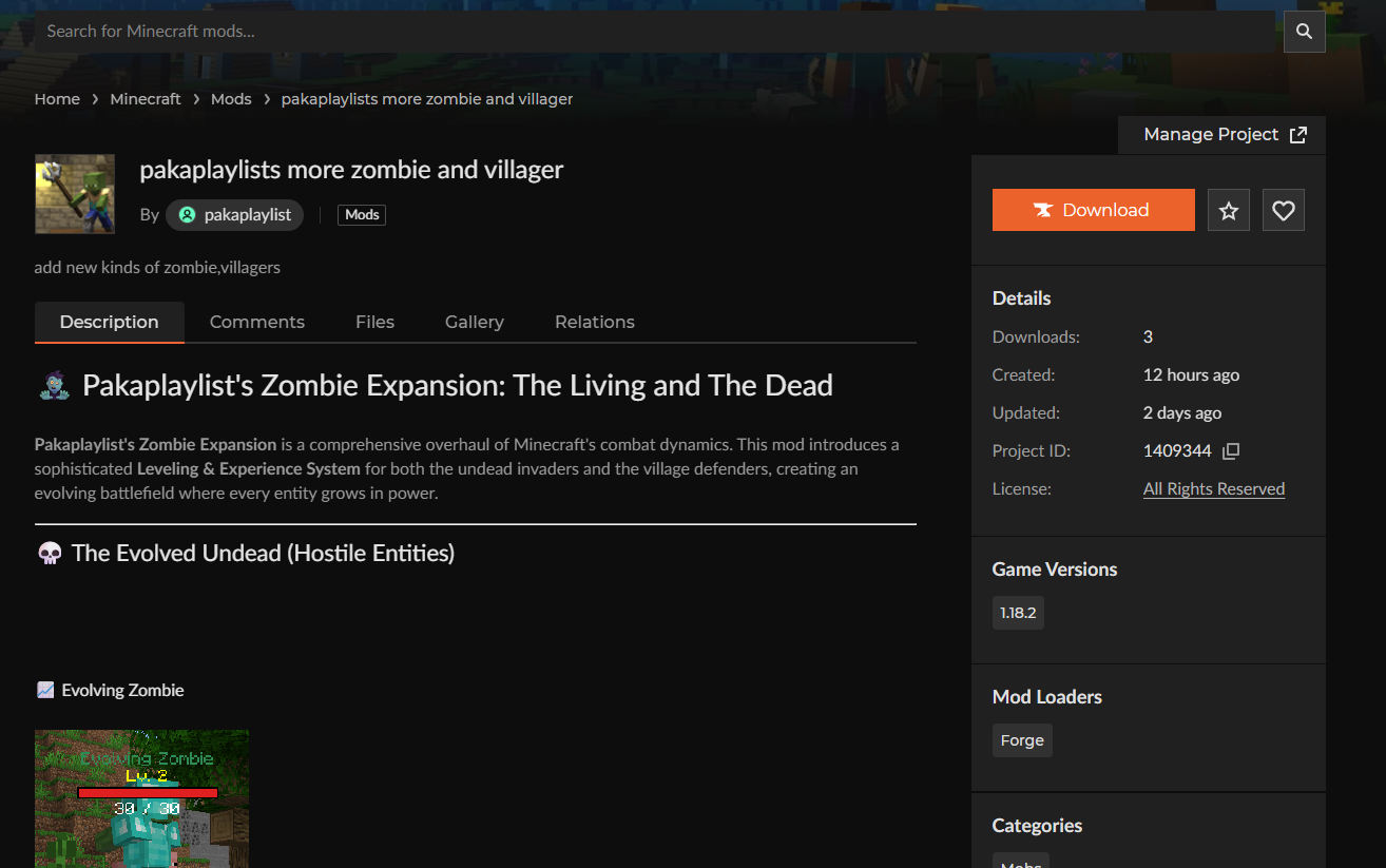 - Description: 모드 설명 (어떤 좀비가 추가되는지 등)