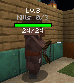 - 제작대 방식: 바닐라 주민 모델을 그대로 사용하면서, 그 위에 **오버레이(HUD)**를 띄워 레벨과 체력을 표시하는 데 집중합니다. 주민의 기본 모델(팔을 모으고 있는 모습)을 수정하기보다는 정보 전달에 치중합니다.