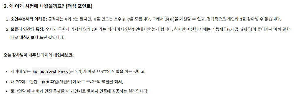 - 수업 내용: 강사님이 "내가 사과라고 던지면 상대도 사과라고 받아야 한다"고 비유하며, 정보를 주고받을 때 양쪽이 같은 키를 공유해서 잠그고 푸는 방식이라고 설명하셨습니다.