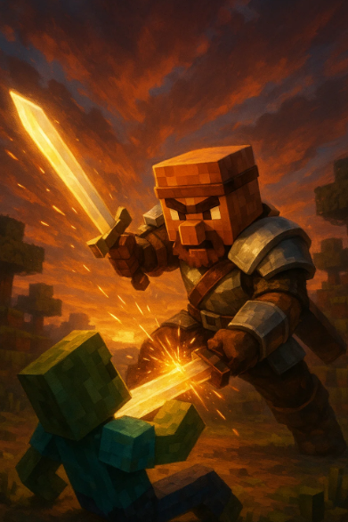 "잠깐만, 이 전사 주민이 칼 휘두르는 건... 기본 마인크래프트 몹에는 없는 기능이잖아?"