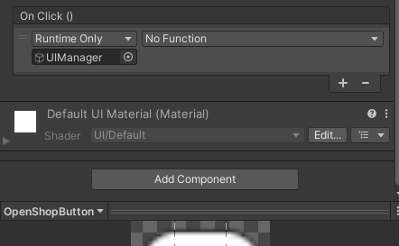 1. GameUIPanel 아래의 OpenShopButton 선택2. Inspector에서 On Click() 항목 확장